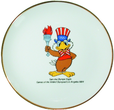 c612. Commemorative Mascot Sam the Eagle Plate. Multicolor porcelain,