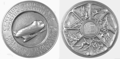 and legend surrounded by 8 winter sport events. Rev. Three-dimensional